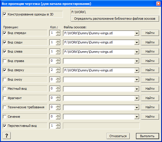 Для случая с корсетом, надо указать три проекции в сочетании "вид спереди" - "вид слева", "вид слева" - "вид сзади".